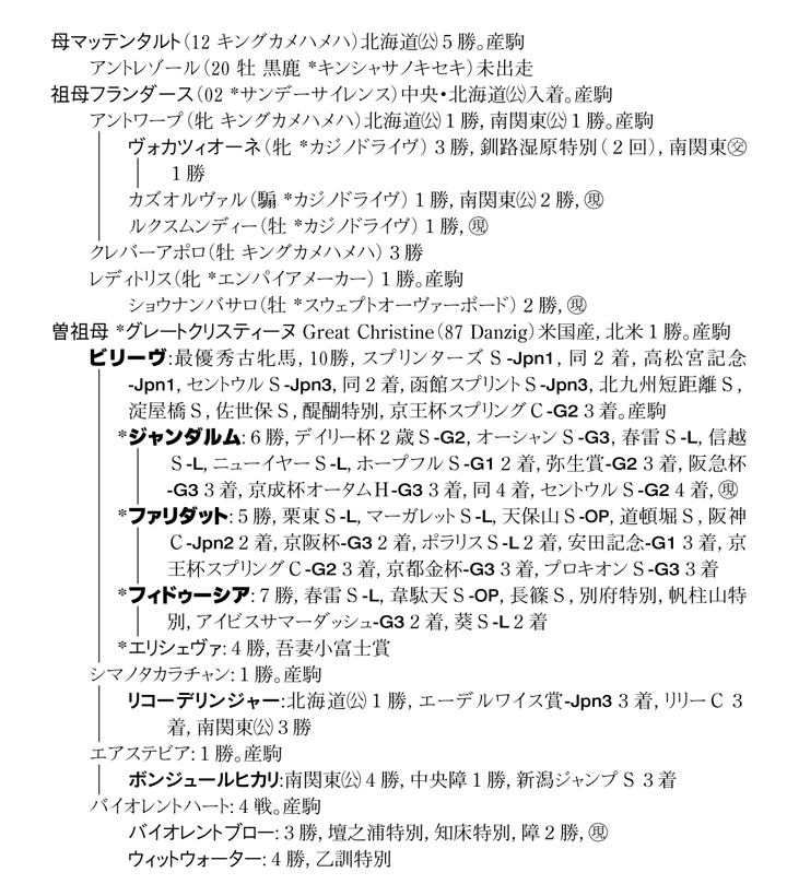 2歳新馬 | 芝1800 | 6 | 4 | 16 | 3枠 6番 |