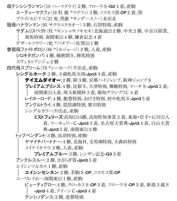 | 性別 | 牝 | 毛色 | 鹿毛 |