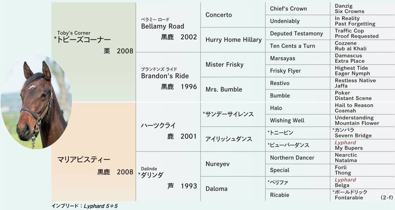 父は代表産駒の武蔵野S勝ち馬のソリストサンダーをはじめ、ダートを中心に実績を残すトビーズコーナー。母は芝中距離馬だったが、産駒のライオットガールはダート1800mで2勝している。同じ父を持ついとこのエナハツホはダート1800mを4勝してオープン入りしており、これが父とこの牝系との相性の良さの裏付けとなるだろう。本馬はややコンパクトだが、遅生まれであり今後の成長が見込める。バネがあって、素軽い動きを見せており、この資質に馬体が伴えば、活躍の道が自ずと見えてくるはずだ。ヒダカファーム生産のトビーズコーナー産駒と言えば、クラブ所属で3勝を挙げたヒイナヅキ。今度は本馬が地方の舞台で大暴れといきたいところだ。