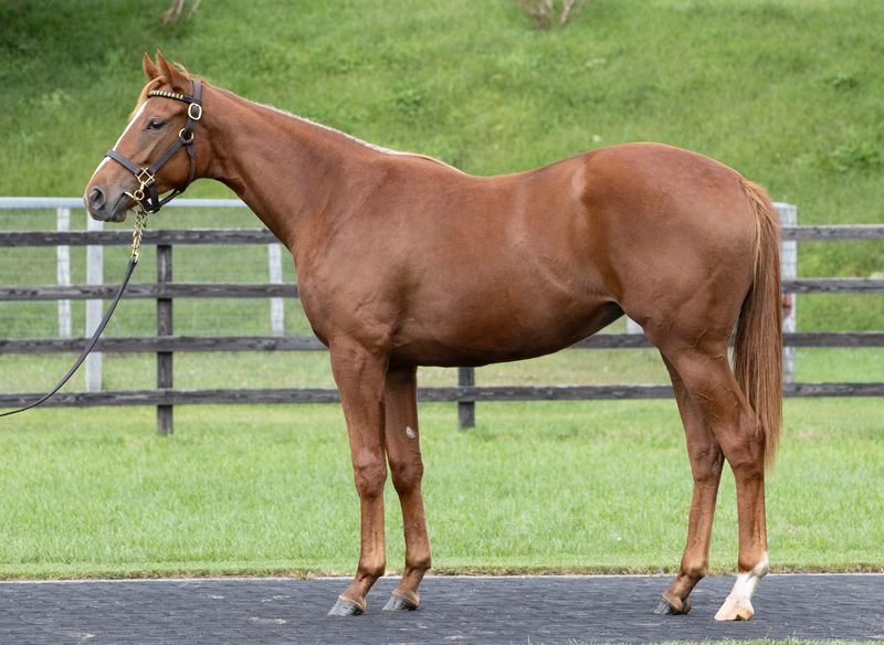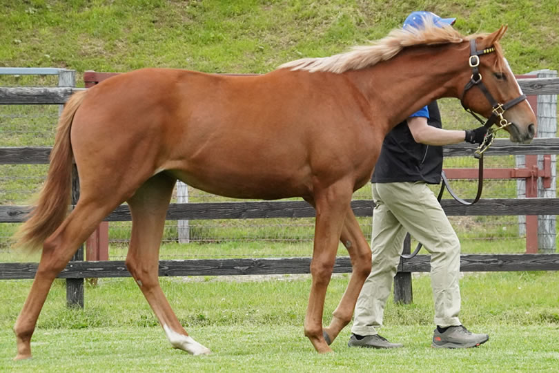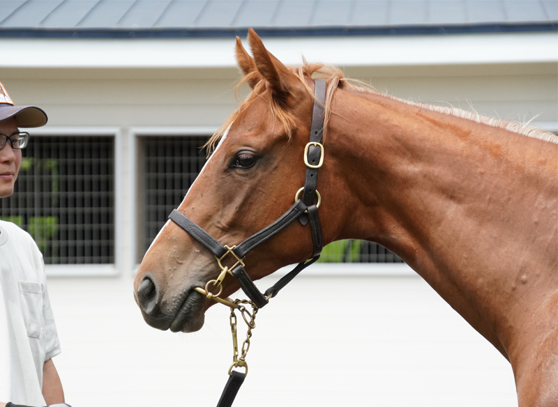 母ローラズライトは北米で芝9F(約1800m)以下の重賞を複数勝利した活躍馬。サイアーラインに名種牡馬Tapitを持ち、競走成績、血統ともに高いスピード能力を持っていることが窺えます。繁殖牝馬として購入後、アメリカの名競走馬でありトップクラスの種牡馬でもあるGun Runnerを現地で交配し、受胎した状態で日本へ輸入した後に本馬が誕生しました。初仔ながら十分なサイズの馬体で、首差しが軽く、前後躯の筋肉に柔らかみが感じられます。キビキビとした素軽い脚捌きからも芝向きの印象で、母譲りのスピードを日本の軽い馬場でも発揮してくれそうです。父は北米で2歳種牡馬リーディングに輝くなど産駒の仕上がりは早く、本馬も早期デビューの期待が高まります。芝のマイル戦を中心に、2歳戦から3歳春の桜の舞台へと王道路線を歩んでほしい1頭です。