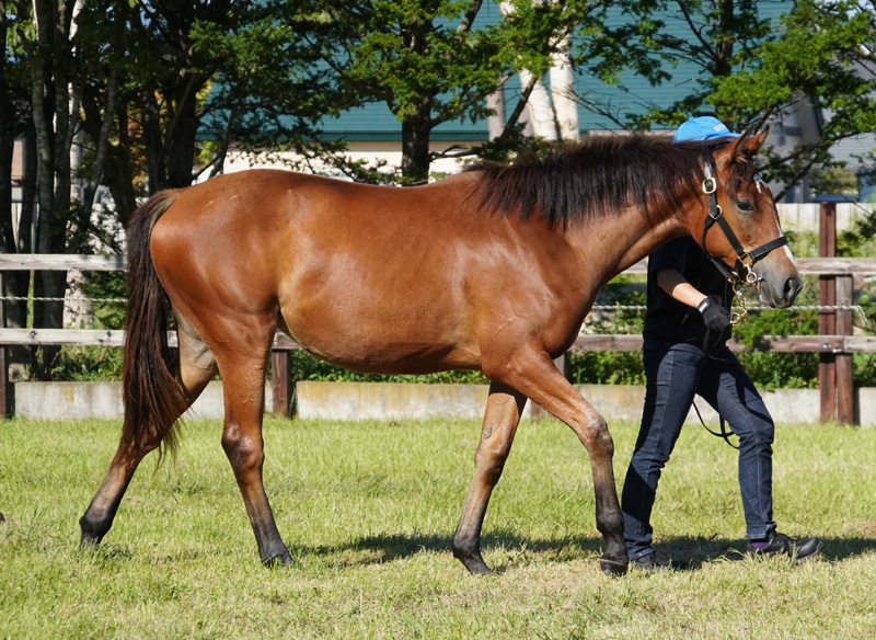 初年度産駒から次々と重賞勝ち馬を輩出し、評価が更に高まっている種牡馬シルバーステートの5年目の産駒です。初年度産駒の2歳戦の活躍を受けて翌春に交配された世代で、多くの優秀な繁殖牝馬が交配されており、本馬の母もそのうちの一頭。母の全兄と全姉が北米重賞戦線で活躍しており、同じ血統の母にもその能力は潜在的に遺伝しているものと思われ、繁殖牝馬として期待は非常に高いです。本馬は母を輸入した後に日本で種付けされた最初の産駒で、5月生まれでやや小ぶりに見えますが、素軽い脚捌きをしており、トモの筋肉量も十分。父の産駒の傾向同様、芝で軽快なスピードを見せてくれそうです。血統構成が似ているいとこのオープン馬トゥデイイズザデイは芝1600~2000mで勝利し、本馬もマイルから中距離での活躍を期待しています。