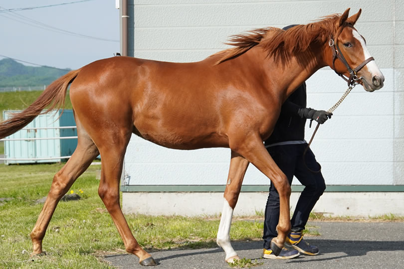 母の血統背景をみると、どうしても芝の成績が優位になってしまうところがあり、勝ち上がりづらくなってしまうのではと考え、ダート巧者で体力のある父をチョイスしました。配合の意図はダート適性の補填です。馬体的には中距離向きかと思える印象です。牝馬ではありますが、ボリュームがあって大きく見映えがするのも好印象の一つだと思います。ダートの補填とは言いましたが、1勝したあとは、将来的には、芝、ダートどちらもこなしてほしいと考えています。