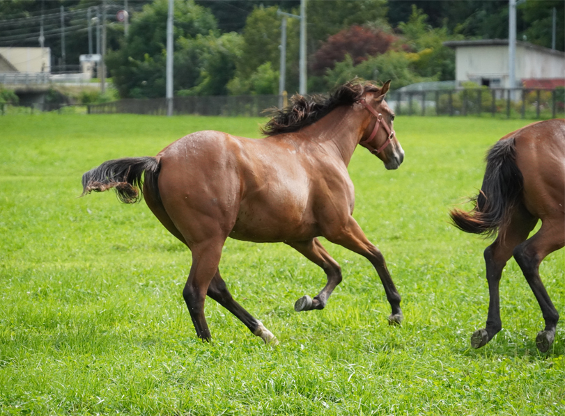 母アスターストーリーは2勝馬。ゴールドアリュールの仔らしく、ダートの1800m中心に走りました。テーオーケインズを筆頭に次々と砂の猛者を送り出しているシニスターミニスターを配合したことで、更に適性を強める格好になっています。まさしくその狙い通りに出たと言って良いでしょう。牝馬としては馬格が十分。首差しはやや軽めですが、がっちりと逞しい体形をしています。歩様も力強く、いかにもパワータイプといった印象。血統からも、もちろんダート。距離はある程度延びた方が良さそうです。日進牧場生産の父の産駒と言えば、忘れてならないのは2023年のJBCクラシックを圧勝したキングズソード。この相性の良さは見逃せません。ゆくゆくは交流重賞路線に乗り、やがてはJBCレディスクラシックへ。新たな物語を紡いでくれることを期待しています。