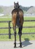 現在は、屋根付きのダートコースでダクを1000m、ハロン25秒を上限とするキャンターを1000~1600m乗っています。また、調教後は昼夜放牧を行っています。現状はハミ受けを確認しながら、体を使ったより良いフォームで走れるように基礎を習得している段階ですが、動きはしなやかで好印象です。従順な性格から、しっかりコントロールが利き、どっしり構えて調教に臨めています。段階的にキャンターの距離を延長しながら、基礎体力の強化に努めます。