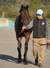 ヒダカシーサイドファームに移動後も、環境の変化に戸惑う様子はなく、すぐに馴致を開始しています。教えることに対して素直な反応で、物覚えも良好。時間を要することなく跨ることができ、ロンギ場で補助をつけて常歩を行っても、どっしりと構えていました。現在は馬場での調教開始に向けて、乗り馴らしを進めています。一頭でも寂しがる様子もないため、そう遠くないうちに次の段階に移行する予定です。現在の馬体重は445kg。