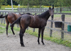引き続き昼夜放牧を行い、馬体の成長を促しています。首差しは太く、腹袋も大きくなってきました。肩から背中、トモにかけて筋肉が乗り、春先に比べてフレームが大きくなり、一段とパワーアップしています。馬体の変化は動きにもしっかり表れ、素軽さが目立つキビキビとした脚捌きには、力強さも備わってきました。もうしばらくは昼夜放牧を継続し、より成長を促した上で育成場に移動して馴致を開始する予定です。現在の馬体重は446kg。