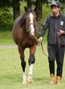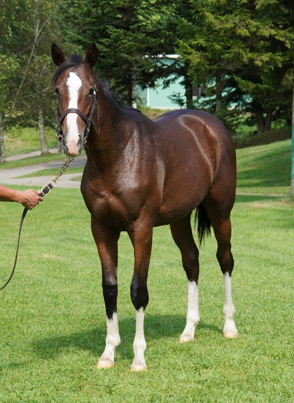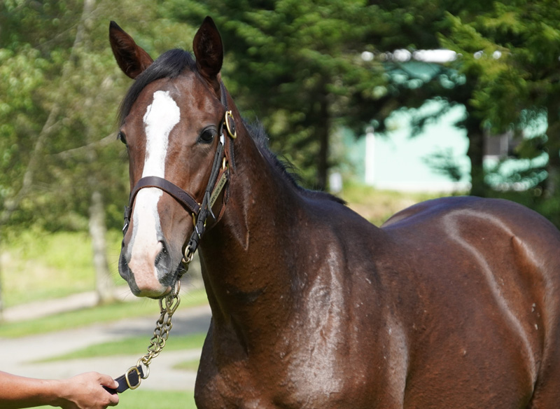 引き続き、昼夜放牧を継続し、馬体の成長を促しています。5月に移動してきた当初は、飼い喰いが安定しませんでしたが、徐々にしっかりと食べられるようになってきました。飼い喰いが良くなってきたことは馬体にも表れており、腹袋に厚みが出ていますし、胸やトモの幅も増してきました。また、背丈も伸びており、次第に周りの馬に成長が追い付いてきました。なお、明日、ファンタストクラブ内木村牧場に移動し、馴致を始めていく予定です。現在の馬体重は398kg。