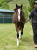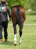移動後は飼い喰いに影響が出たため、すぐに馴致を開始せず、パドック放牧を行う等、環境の変化に慣れるように努めました。その後、ウォーキングマシーン運動を始めたり、洗い場に入れたりと段階を踏みながら進めています。現在は胴締めを行っており、嫌がってバタつくことなく対応できています。元来素直な気性のため、慣れてしまえば手を煩わせずに進むでしょう。なお、もう少し成長してほしいため、成長を妨げないようように注意していきます。