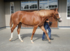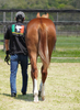 育成場に移動後も、環境の変化に戸惑いは一切ありませんでした。馴致の開始後も順調に進み、背馴らしまでスムーズに終え、現在はインドアのバーク馬場でダクを乗っています。騎乗者からの指示に対して素早い反応を見せ、これまで教えてきたことをしっかり実践できています。とても物覚えの良いタイプと言えるでしょう。近日中にハッキングを始め、基礎体力と筋力の強化を図り、BTCで調教を開始する準備を整えていきます。現在の馬体重は454kg。