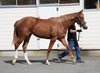 現在は、インドアのバーク馬場でダクを1400m、ハッキングを1400m乗っています。がっしりしたフレームに筋肉が付いてきて、動きも力強さが出てきたように感じられます。また、馴致や乗り馴らしを通じて、しっかり口向きをつくってきたため、操縦性は良好です。僚馬が幼い仕草を見せても、釣られることは一切なく、リードホースを任せられるくらい堂々とした立ち振る舞いを見せています。来月中にBTC近郊の厩舎に移動し、キャンター調教を開始する予定です。