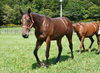 辻牧場では昼夜放牧を行い、馬体の成長を促してきました。手術を行った両後肢の経過に問題はなく、広い放牧地を元気に駆け回っています。手が掛からない穏やかな性格ですが、多頭数の中に入っても怯むようなところは全くありません。自分をしっかり持ったタイプのようです。また、重心が低めの馬体には、日に日に実が入ってきており、育成をスタートする態勢が整いました。そのため、本日、99.9に移動しています。現在の馬体重は450kg。