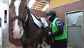 左後肢にフレグモーネを発症しました。体温は39.6度まで上昇し、患部には腫れと熱感が認められ、跛行も見られます。現在は調教を控え、抗生剤の投与等の治療を行っています。症状が落ち着くまでは、舎飼いで経過を観察する予定です。