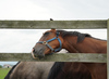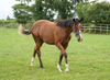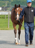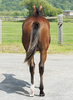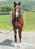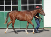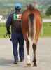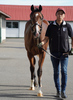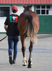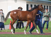 環境の変化に慣らした上で、馴致を行いました。気の強い面はありますが、特に手が掛かるようなことはありません。現在は、屋根付きのダートコースでハッキングを2500m乗っています。一頭だけで乗っていた時は、元気なところを見せていましたが、集団調教を行うと落ち着くようです。後方を走らせる際は、集中力が増し、前向きに走ろうとする気持ちを出してくれます。このまましっかり乗り馴らしていきます。現在の馬体重は430kg。