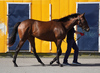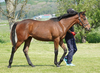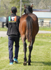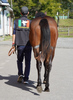 引き続き、昼夜放牧を継続しながら、現在は屋外のダートコースでダクを2400m乗っています。ダクの距離を延ばしても疲れは見られません。調教を進めていくうちに、人への信頼が深まり、より従順になった印象です。また、先頭を走らせた際の物見は、ほとんど気にならなくなってきました。集中力も高まってきているのでしょう。このまましっかり乗り、来月中に開始する予定のキャンター調教に向けて基礎体力の強化に努めていきます。