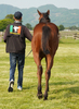 異なる環境に十分に慣れさせ、新しい担当者との信頼関係の構築にじっくり時間を掛けたこともあり、馴致をスムーズに終えることができました。現在は、屋根付きのロンギ場でダクやハッキングを乗っています。左回りと右回りのどちらの周回でも、口向きに癖はありません。騎乗者とのコンタクトもしっかり取れています。このまま基礎事項の習得を徹底することで、早い段階で馬場での調教を開始できるように努めていきます。現在の馬体重は402kg。