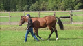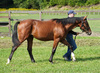 移動後、父の産駒らしさが感じられる気の強さを見せています。そのため、慎重に馴致を行い、現在はBTCの屋内の直線ウッドチップコースやウッドチップの屋内坂路でハロン25秒くらいのキャンターを1000m乗っています。10頭ほどの多頭数で行う調教の方が落ち着くようで、特段手を焼くようなことはありませんが、気性が調教の進度を妨げないように注意しながらじっくり乗り馴らしていく方針です。現在の馬体重は395kg。
