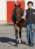 現在は、BTCの屋内のダートコースでハロン25秒くらいのペースで2400m、ウッドチップの屋内坂路でハロン20秒を上限とするキャンターを1000m、日によってはトレッドミルによる運動も行っています。また、この中間には坂路をハロン18秒くらいで乗りました。父の産駒に見られがちな気性面の難しさを考慮しながら調教していますが、現時点では扱いに困ることはありません。現状はオンとオフの切り替えができています。このまま心身の成長を促すように進めていきます。
