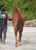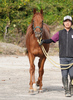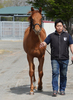 移動後も熱発等の異常はなく、体調を整えてから騎乗調教を開始しました。現在は角馬場でハッキングを15分ほど行っており、体の使い方が上手で、しっかり首を使って走れています。気性に関しては非常に落ち着いており、調教時も鞍上の指示に素直に従い、スムーズに周回できています。様子を見ながら周回コースや坂路での調教を開始し、体力強化に努めていきます。先週の金曜日計測の馬体重は407kg。