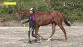 移動後の環境の変化に戸惑う様子はほとんどなく、スムーズに馴致を終えました。現在は、屋根付きの角馬場で乗り馴らしを行っています。人の指示に対する反応は素直で、理解力もあります。ここまで順調に段階を踏んでおり、このまま口向きの向上や基礎体力の強化に努めていきます。なお、そう遠くないうちに栃木県のトゥモローファームに移動する予定のため、体調の管理にも気を配っていきます。現在の馬体重は420kg。