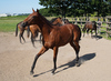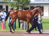 7月中に馴致を終えた後、昼夜放牧を行い、一息入れていました。トレーニングセンターに移動後は、再確認する意味で改めて馴致をしていますが、いずれもスムーズでした。現在は、屋根付きのダートコースでハロン23秒を上限としたキャンターを2500m乗っています。また、中間には屋根付きのダート坂路をハロン23秒くらいで1000m乗りました。このまま口向きをつくりながら、体力の強化に努めていきます。現在の馬体重は480kg。