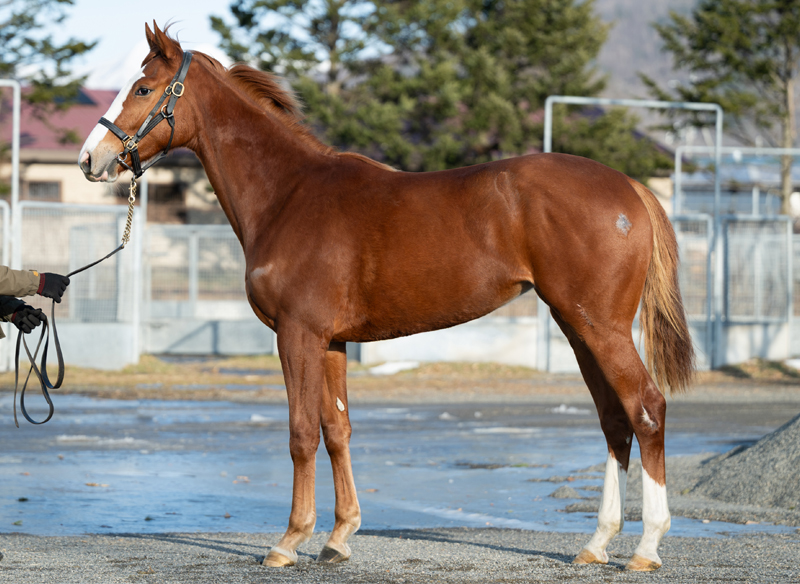 馬体チェックを行ったところ、右後肢(飛節)に将来的にOCD(離断性骨軟骨炎)に発展する可能性を指摘されたため、予防的措置として7月上旬に該当箇所の手術を実施しました。手術は無事に終了し、術後の診察において獣医師からは「競走能力に影響はない」との診断を受けています。なお、術後2週間くらいは舎飼いで経過を観察し、その後は徐々に放牧を始めていきます。