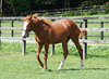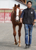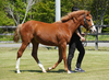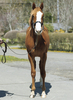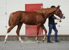 9月中旬に育成場へ移動後、新しい環境に戸惑うことはなく、順調に馴致を終えています。現在は鞍を着け、人が背に腹ばいになる等していますが、反抗する様子はありません。また、手術した右後肢の経過は良好で、歩かせても全く問題ありません。この様子なら、早いうちにBTCでの調教を開始することができそうです。現在の馬体重は438kg。