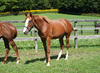 引き運動やウォーキングマシーン運動を行っても、問題ないため、一昨日から日中放牧を始めています。