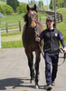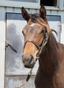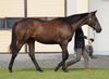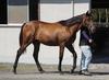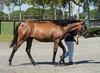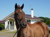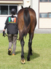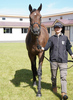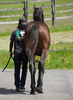 人の指示に対して素直な反応を示しており、初めて行うことに対しても前向きに取り組めていました。物覚えも非常に良く、背馴らしまでスムーズに終えています。現在は、屋根付きのダートコースでダクを1000m、ハッキングを1000mを乗っています。乗り運動を開始した後も、騎乗者とのコンタクトは良好で、口向きに癖もなく、操縦性に優れています。このまましっかり運動を積み重ね、基礎体力の強化に努めます。来月からキャンター調教を開始する予定です。