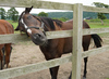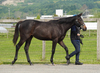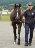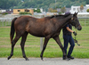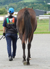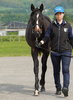 移動後も気持ちが昂る様子はなく、飼い喰いも良好です。服部牧場では、馴致がスムーズに進むよう胴締め等の基礎事項を事前に行った上で移動しており、昨日からスタートした馴致も順調に進むでしょう。また、木村牧場ではウォーキングマシーン運動を行っても、洗い場に入れても当たり前のように対応しており、短期間で新しい担当者にもすっかり慣れました。賢い馬なので、手が掛かることなく次のステップへ進むことでしょう。