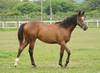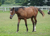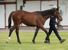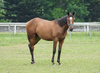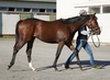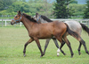 環境の変化に慣らした上で、馴致を開始しました。ロンジング運動では、バネのある良い動きを見せています。また、人の指示に対して素直で、教えたことの飲み込みも早いです。現在は屋根付きのロンギ場で乗り馴らしを行っています。複数頭での部班運動を主体として、体の使い方や口向きの向上に努めています。馬体の成長を妨げないよう十分に配慮しながら進めていきます。現在の馬体重は410kg。