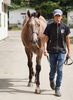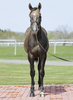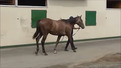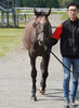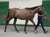 人の指示に対して従順で、普段からどっしり構えています。馴致やロンギ場での乗り馴らしも同様で、手が掛かることはありませんでした。現在は、ウッドチップの屋根付き坂路でハロン20秒くらいのキャンターを1000m乗っています。乗り始めてからまだ日は浅いですが、運動メニューが進んでいる組に追いついてきました。このまま体力の強化はもとより、更なる馬体の成長に努めていきます。現在の馬体重は477kg。