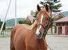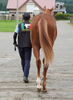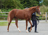 4月に移動してきた時は、勝った気性を抑えられないような面がありましたが、しっかり手を掛ける中で、我慢することを学んでいます。メンタル面が鍛えられたことは、馬体の成長にも好影響を及ぼし、体は一回り大きくなり、肉付きも良くなっています。ロンギ場でのダクや厩舎周辺での常歩を行い、乗り馴らしを進め、成長を促していきます。現在の馬体重は425kg。