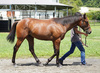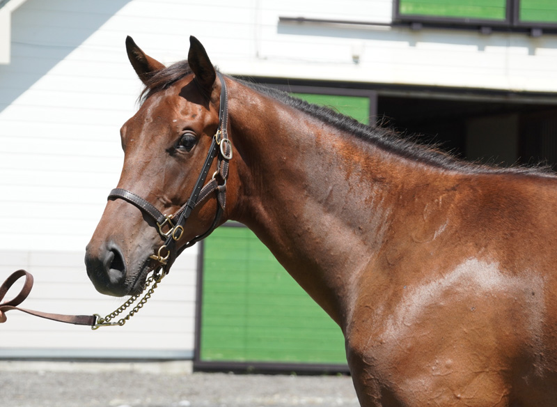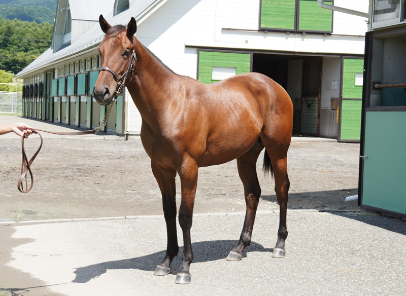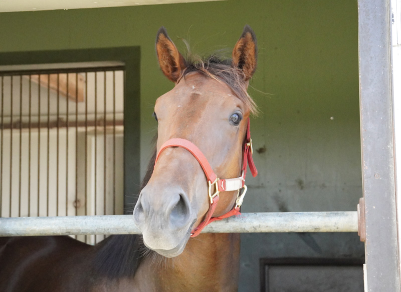 BTC前の厩舎に移動した後も、戸惑いは一切ありませんでした。そのため、翌日から乗り運動を開始。BTCの様々なコースをスクーリングした際も、どっしり構えていました。現在は、屋内の直線のウッドチップコースでハロン23秒くらいのキャンターを1000m乗っています。騎乗者とのコンタクトはしっかり取れており、口向きも特に癖はありません。この様子なら早いうちに坂路調教を始めることができそうです。現在の馬体重は448kg。
