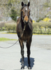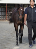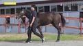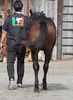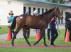 武田ステーブルに移動後の環境の変化にもすぐに順応し、馴致も時間を掛けず終えることができました。乗り馴らしを開始しても、堂々とした立ち振る舞いは変わりなく、屋根付きのロンギ場でダクとハッキングを乗っても同様です。騎乗者からの指示に対する反応は早く、手前の替え方もスムーズ。口向きも安定していました。なお、ここまで順調に進めることができたため、昨日、様似町軽種馬共同育成センターに移動しています。現在の馬体重は416kg。