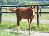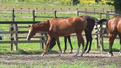 馴致から背馴らしまで何一つ手が掛からず、とんとん拍子に終えることができました。引き続き昼夜放牧を継続し、馬体の成長を促すとともに、現在は屋外のダートコースで常歩やダクを乗っています。3頭で隊列を組み、日によってポジションを入れ替えても、戸惑うことはありません。騎乗者の扶助にしっかり応えることができています。このままじっくり乗り運動を行い、調教の負荷を上げる態勢を整えていきます。現在の馬体重は405kg。