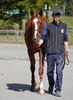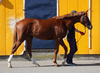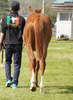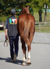 現在は、屋外のダートコースでダクを2400m乗っています。一緒に調教を行っている馬を先導できるくらい、どっしり構えており、精神面で頼もしさを感じます。馬体面では、背丈が伸びてきただけでなく、全体的に筋肉量が増えていることで、見た目も動きもしっかりしてきました。それでもまだ、腰高な体形をしていることからは、ますますの変化が期待できそうです。このまま馬体の成長を阻害しないように留意しながら、より一層の体力の強化に努めていきます。