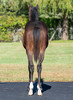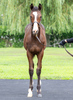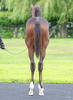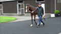 引き続き、昼夜放牧を主体としていますが、まだ成長途中の体つきで、飼い葉喰いも旺盛とまではいかなところもあります。そのため心身に余裕を持たせる目的から、時折、日中放牧を挟むようにしています。Yearling厩舎に移動した際も環境の変化に戸惑う様子はなく、人の手を煩わせることのない温厚な気性です。また、相変わらずバランスが良く、綺麗なシルエットは目を惹く存在です。このまま心身の成長に努めていきます。