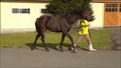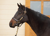 現在は、屋根付きのダートコースでダクを1000m、ハロン25秒を上限とするキャンターを1000~1600m乗っています。また、調教後は昼夜放牧を行っています。現状はハミ受けを確認しながら、体を使ったより良いフォームで走れるように基礎を習得している段階ですが、動きはしなやかで好印象です。従順な性格から、しっかりコントロールが利き、どっしり構えて調教に臨めています。段階的にキャンターの距離を延長しながら、基礎体力の強化に努めます。