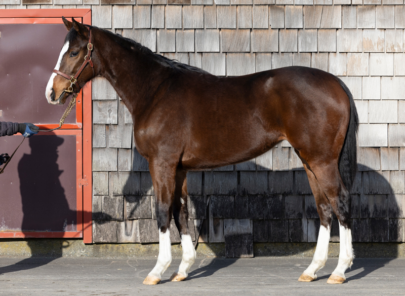オークス馬ダイナカールから連なる名馬の系譜。各世代から活躍馬を輩出しており、高松宮記念を制したオレハマッテルゼを筆頭に、エガオヲミセテ、ウォータクティクスらが重賞を制しています。オールドファンにはたまらない血統でしょう。クラブでもキセキノケイフが準オープンまで出世。縁のあるファミリーです。父は現役時代に皐月賞と大阪杯、2つのGⅠを制したアルアイン。母の父がハービンジャーということもあり、芝向きの配合になりました。現状やや小柄に見えますが、丸みがあってバランスは取れています。トモの幅、厚みともに十分でコンパクトにまとまっている印象。マイルから中距離あたりが合いそうです。また、素直な気性、キビキビとした歩様にも好感が持てます。今は小さな蕾かもしれませんが、やがて咲かせる大輪の花。桜の季節に満開といきたいところです。