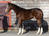 素直な気性から、馴致に手を煩わせることはなく、スムーズにクリアしています。現在は、厩舎周りを騎乗しての常歩や、小回りの屋根付きのダートコースでダクやハッキングを乗っています。まだ、乗り馴らしを行っている段階ですが、他の育成場の馬とすれ違っても動揺することはなく、落ち着いています。ただ、運動後は汗びっしょりになっており、基礎体力の向上が現状の課題点です。今後は体力の強化にも重点を置いていきます。現在の馬体重は410kg。