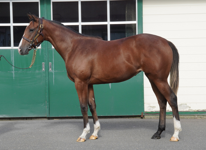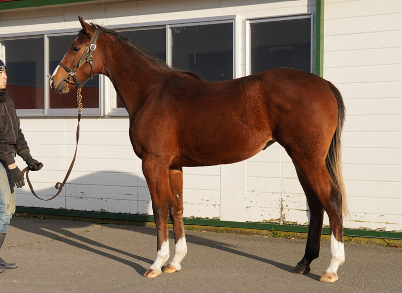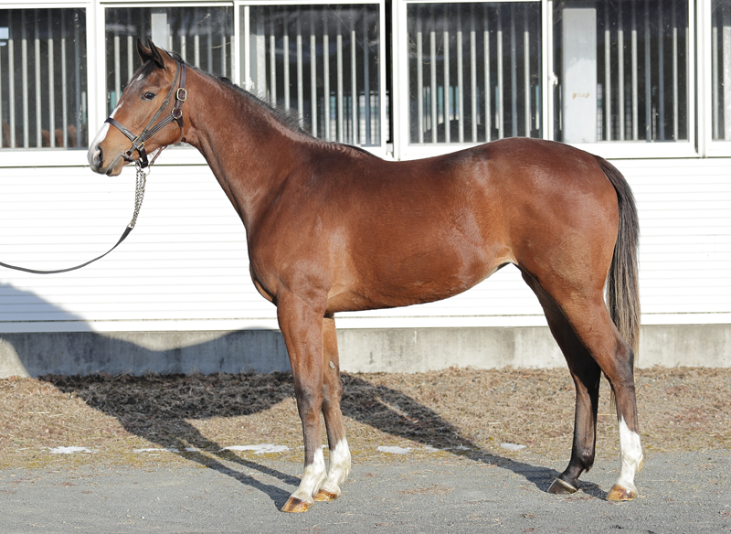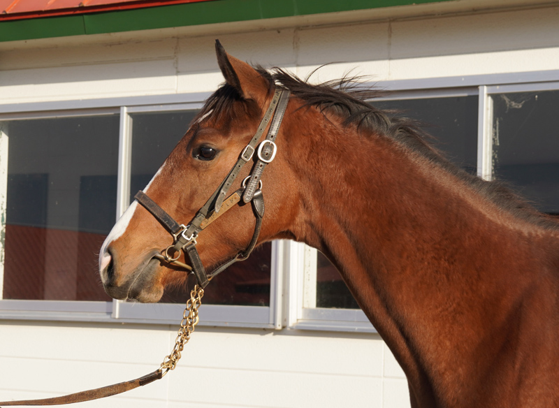 重賞5勝で現役活躍中のトウシンマカオの全妹です。母ユキノマーメイドの繁殖実績は本当に素晴らしく、産駒のJRA勝利数は合わせて26勝。高齢になりましたので、本馬で最後の子育てとなりました。どうしても重賞勝ち馬の全兄弟をつくりたかったので、同じ父を付けました。本馬は兄同様、少し詰まったコンパクトな馬体で、いかにも短距離向きの体形をしていると思います。兄のようにスピードのある、素晴らしいアスリートになってくれると思っています。