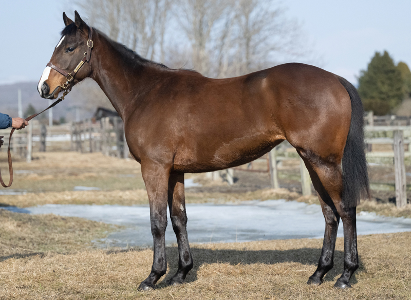 母はダート短距離のオープンクラスで活躍しました。父は毎年トップ10に入る名種牡馬。あらゆるタイプの産駒を輩出している万能タイプ。サンデー系の血を持っていないため、母にはサンデーの血を薄めて次世代に繋げる目的で配合しました。各関節のつくりやトモの容積も大きくしっかりしています。前後躯のバランスにも優れ、抜群の安定感です。気性面は気が強く、闘争心に溢れています。体形的にダートの短~中距離で母のような活躍をして、血を繋いでほしいです。