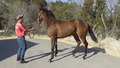 引き続き、昼夜放牧を継続しながら、現在は屋外のダートコースでダクを2400m乗っています。ダクの距離を延ばしても疲れは見られません。調教を進めていくうちに、人への信頼が深まり、より従順になった印象です。また、先頭を走らせた際の物見は、ほとんど気にならなくなってきました。集中力も高まってきているのでしょう。このまましっかり乗り、来月中に開始する予定のキャンター調教に向けて基礎体力の強化に努めていきます。