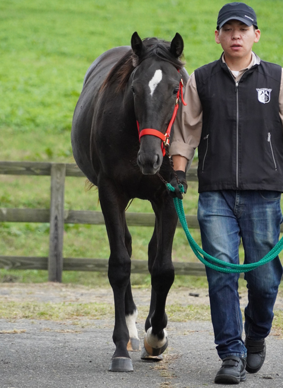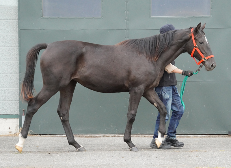 引き続き、昼夜放牧を行い、馬体の成長を促しています。背丈の伸びもさることながら、腹袋がしっかりとし、前後躯にも張りのある筋肉が豊富についてきました。重量感が増している馬体を支える四肢は、膝下が短く、骨量も豊富。見るからに丈夫そうな印象です。成長力に富む血統背景を踏まえても、今後の更なる成長が楽しみです。なお、近く賀張共同トレーニングセンターに移動する予定です。現在の馬体重は461kg。