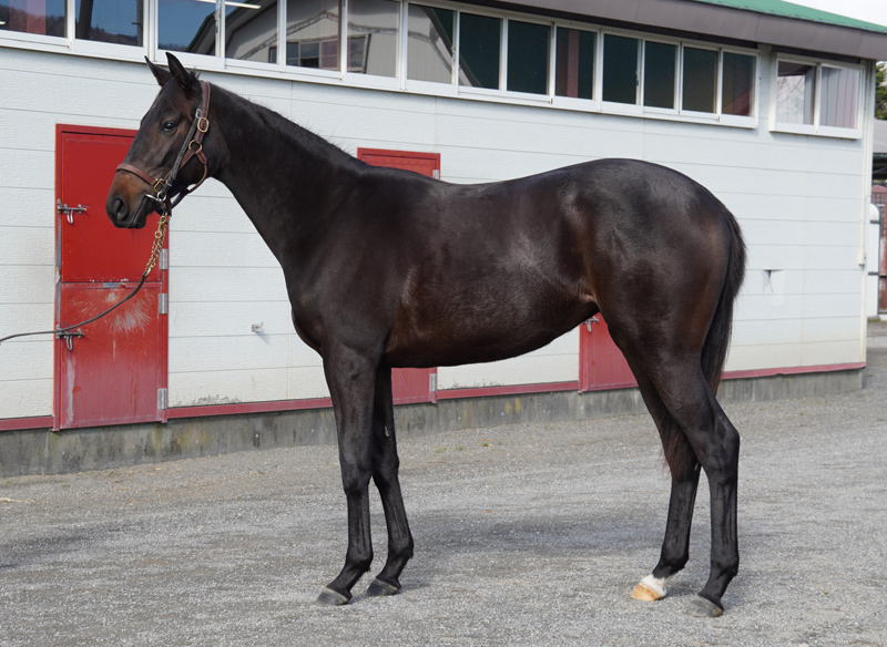 育成場に移動後も、環境の変化に全く動じることはありませんでした。そのため、すぐに馴致をスタートし、現在は胴締めと鞍乗せを行っています。初めて行うことに対しても素直に受け入れることができ、手が掛かるようなところはないため、近いうちに背馴らしを始められそうです。背と胴が伸び、満遍なく筋肉がついたことで馬体がひと回り大きくなっています。それでも、腰高な体形をしており、今後の成長が非常に楽しみです。現在の馬体重は411kg。