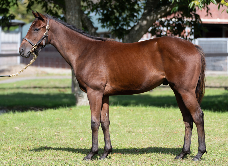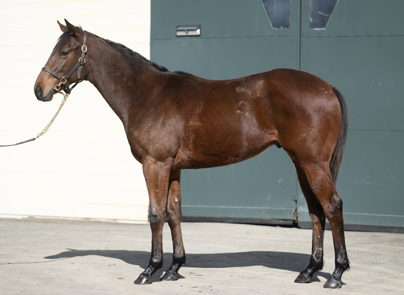 芝で着実に実績を重ねながらも、ダート転向後に一気に素質開花。2023年のJBCレディスCで頂点に立ったアイコンテーラーの弟です。クラブではベイビーシスターに続いて産駒の登場となりました。父は高松宮記念など重賞8勝、香港スプリントを父仔制覇したダノンスマッシュ。スピードを強化した配合となりました。現状、牡馬としてはやや小柄に見えますが、腹回りはしっかりしておりトモの丸みも十分。胴も詰まり気味でいかにもスプリンターといった体形をしています。また、この血統は先々良くなってくるのも特徴。これからどんどん変わってくることでしょう。脚捌きは軽く、芝向きの印象です。管理予定は『JRA初の女性調教師』となった前川恭子調教師。厩舎カラーのティファニーブルーの爽やかな風に乗り、スプリント王へと駆け上がってくれることを期待しています。