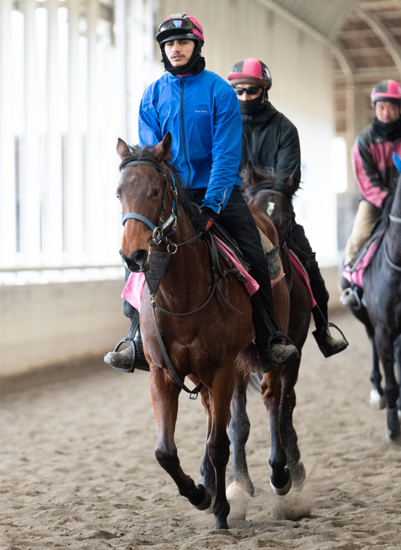 引き続き、場内の屋外のウッドチップコースでハッキングを3000m、週1、2回はBTCのウッドチップの屋内坂路でハロン17秒を上限としたキャンターを1000m乗っています。先月に比べると、馬体はふっくらしてきました。動きの面でも小気味良く駆け上がることができ、年末年始に一息入れた効果が感じられます。来月からは坂路をハロン16秒くらいのペースに上げる予定のため、このまましっかり調教を積み重ねていきます。