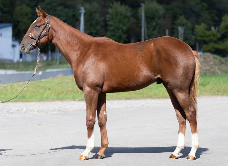 おじムーンクレストはクラブ所属として7勝。平地と障害で勝ち星を挙げ、2歳から7歳まで長く活躍してくれました。祖母ビューティーコンテストは仔出しが良く、ダンディズム、ダノンマッキンレーなど産駒は堅実な成績を残しています。母ウイングルイーズはその後継として期待の大きな一頭。父はプロキオンS、クラスターCと重賞を2勝したマテラスカイ。産地の評判が高かっただけに、早世が惜しまれます。この血統は馬格に恵まれる傾向にありますが、本馬も例に漏れずフレームの大きな好馬体。四肢もしっかりしていて丈夫そうなところにも好感が持てます。また、落ち着きがあって物事に動じないところもセールスポイント。総合的に見てダート向きの印象。程よく伸びのある体形からも、ある程度距離の融通は利きそうです。守備範囲の広い走りで私たちを楽しませてくれるでしょう。