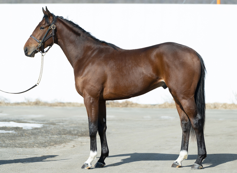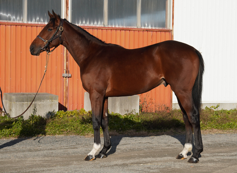 GⅠ11勝という破格の成績を挙げ、最優秀3歳牝馬、後にアメリカの競馬殿堂入りも果たした名牝中の名牝、セリーナズソングから続く骨太の名牝系。名牝は母としても4頭の重賞ウイナーを出し、キングマンボ、シーザスターズと名馬が配された血統は、一層厚みが増しています。仏で3勝した兄だけでなく、本邦で生まれた姉も勝ち上がっており、日本の三冠馬を配して誕生した本馬には、自ずとそれ以上の活躍を期待せずにはいられません。牡馬としてはややコンパクトに見えますが、トモが高く、背が伸びてフレーム全体が大きくなる要素は十分あります。脚捌きは軽くバネがあり、キビキビとした歩様は好印象。父の影響か悍性の強いところはありますが、人間の指示には従順です。芝のマイルからやや長めの距離までこなし、ブラックタイプに名を刻む活躍を期待しています。