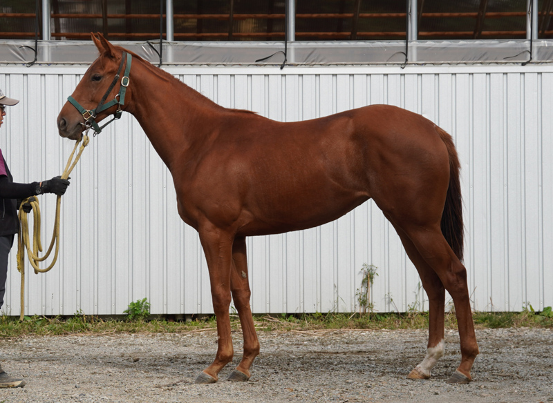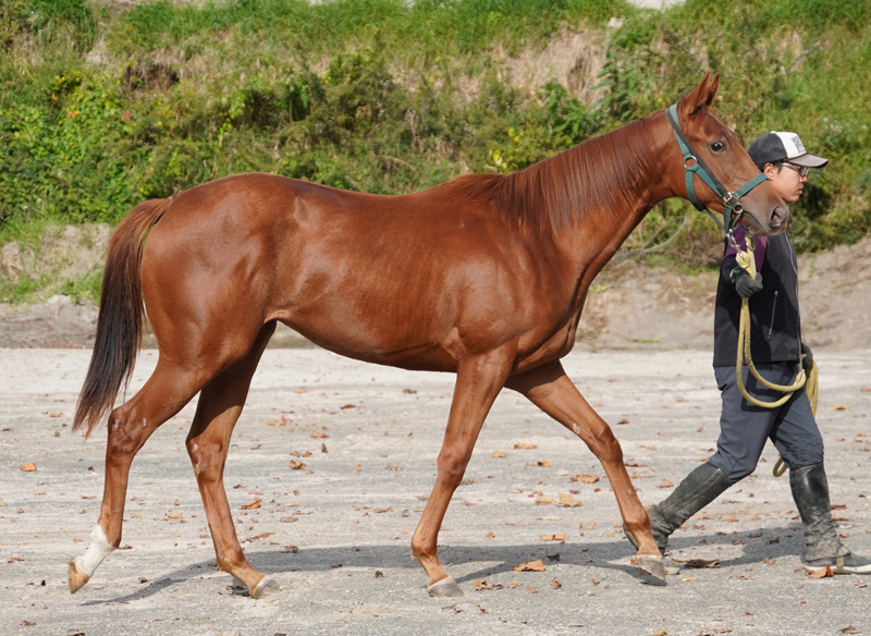 母フォートエリーは和田正一郎厩舎に在籍し、新馬戦から3着、2着と勝利まであと一歩のところでしたが、怪我により未勝利戦があるうちに復帰できず地方へ。無事であれば、祖母シャドウキャスターや曽祖母メイプルシロップと同様に活躍したと思われる期待馬でした。四代母からはJpnⅠ4勝のユートピアや重賞2勝のアロハドリームが出ており、近親には複数の勝利を挙げる馬が多数出るなど、底力と堅実さを併せ持つファミリーです。南関東で2勝した後、繁殖入りし、第2仔として本馬が誕生。本馬には父マカヒキの持つ瞬発力がうまく伝わっているようで、スラッと伸びのある体形で首差しが軽く、柔らかい歩様からも芝向きの印象です。マイルから中距離くらいが守備範囲になるでしょう。母の成し得なかったJRAでの勝利を、同じ和田正一郎厩舎で成し遂げてほしいものです。
